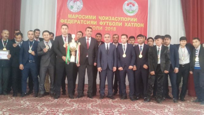 Дар маросими тантанавии тадқими Ҷоми мусобиқа, ифтихорнома ва медалҳо барои ҷойи якум раиси ноҳия Файзуллозода Зафар ва раиси Федератсияи футболи вилояти Хатлон Исроил Шарипов иштирок намуданд.